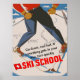 Poster do Ski College com o homem. Vá assim rápido, se algo te atrapalha, vire rápido.