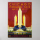 Reprodução do poster do Justo promocional de Chicago de 1933. Em 1933 e 1934, a Feira Mundial de Chicago, conhecida como "Um Século de Progresso", foi organizada como uma empresa sem fins lucrativos em janeiro de 1928. Sua carta era realizar uma Feira Mundial em Chicago em 1933. A exposição "Um século de progresso" foi concebida como um aniversário de 100 anos comemorando a cidade de Chicago e um testemunho das conquistas industriais e científicas até então realizadas.
