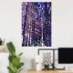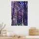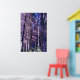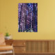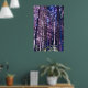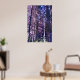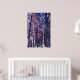 Linda foto de árvores altas na madeira parecendo roxa. Alguns verdes no fundo da foto e vocês podem ver o céu azul atrás das árvores. Belo poster de fotografia decorativa que vai parecer excelente em alguém. Escolha entre diferentes tamanhos, quadros, se desejar, e opções de impressão.