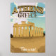 Grécia de férias de Atenas de acropolis. Visite a capital grega Atenas. Poster de viagens de cartum.