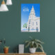 É um dos prédios de Brattleboro. A Igreja Congregacional Central tem uma aranha branca torrencial que realmente se destaca contra um céu azul e nítido, e pessoas em todo lugar olham para ele todos os dias para verificar o tempo. A igreja é feita de madeira, mas tem detalhes para simular pedra. Outra em nossa série de posteres de viagens retrorreflectores com Brattleboro, Vermont.