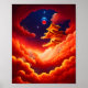 Lua vermelha sobe nas nuvens. Quem verá a mensagem? Criado com o uso do software AI.