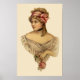 Linda mulher vitoriana segurando um rosa pálido e rosa vermelha com "Saudações Namorados" em roteiro.