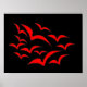 Esta poster apresenta uma coleção de imagens simples de morcegos voando juntos em uma nuvem. Os morcegos são vermelhos e o fundo é preto. As crianças adoram essa design bonitinha. Se você não tem tempo para fazer seus próprios posters de Halloween, então isso é para você. Por que não usar isso como poster e, no próximo ano, cortar os morcegos e fazer um móvel de Halloween com eles.