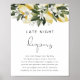 Este modelo de jogos do fralda chá de fraldas noturno apresenta limões de aquarela emparelhados com uma fonte divertida escrita à mão. Use estas modelos para editar a fonte, a cor da fonte e a cor do plano de fundo para corresponder ao seu estilo de evento. Edite o texto *maioria*. Nota: os pêssegos com aquarela são *não editáveis*