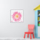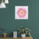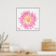Poster mostrada com uma impressão de fotografia de uma flor de dália rosa bonito. Texto de "Joy peace Love" no fundo. Personalize este item ou comprar como está. Imagem do stock www.freepik.com
