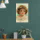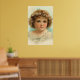 Um impressão vitoriano de uma jovem adorável com uma corrente margarida tecida através do seu bonito cabelo encaracolado. Ela tem um colar de flores margaridas ao redor do pescoço.