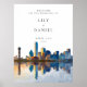 This elegant Dallas skyline watercolor wedding welcome sign can be personalized with your information in modern typography. Designed by Thisisnotme©