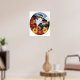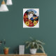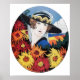 Vibrante, sofisticada ilustração de alta moda Art Deco francesa. Retrato de uma jovem mulher bonita usando um chapéu preto com flor, cores preto, branco, vermelho, azul e amarelo. Design moderno, artístico e legal.