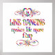 A dança de linha com certeza torna a vida mais divertida! Compartilhe seu amor com este design alegre e colorido com um coração e floresce e as palavras - Line Dancing torna a vida mais divertida.