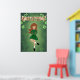 Este poster de dança irlandês apresenta um dançarino irlandês com cabelos castanhos com fundo de shamrock verde.