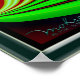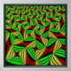 The arrangement of the design and colors create the perception of motion in this image.