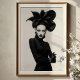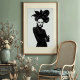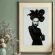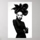 Faça uma declaração impressionante com este impressão de arte branco e preto cativante, uma verdadeira obra-prima da moda de vanguarda e expressão artística. Este retrato frontal convincente apresenta uma mulher de alura intensa, coroada com um extraordinário chapéu preto escultural que se desenrola como uma flor dramática e escura. Vestida em uma camisola preta e elegante, cheia de luvas elegantes de couro e aparando pulseiras prateadas em um punho, seu traje é um estudo em minimalismo sofisticado. Sua pele pálida, lábios pretos escarnecidos, e dramaticamente os olhos alados criam um contraste mesmerizante contra seu conjunto escuro e o fundo branco pristino, enfatizando seu olhar poderoso e direto. Com braços confiantes cruzados, esta trabalho de arte incorpora uma feroz, misteriosa e inegavelmente elegância chica. Perfeito para espaços modernos, estúdios de moda, ou qualquer decoração que busque um toque de sofisticação única, artista ousada, e uma narrativa visual verdadeiramente inesquecível.