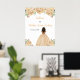 This sweet sixteen welcome sign features faux glitter champagne peach cream floral flowers and a beautiful princess with dark skin and an elegant dress. This is perfect for a sweet sixteen birthday party.