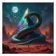 Eine gigantische Schlange bewacht eine leuchtende, techno-mystische Pyramide inmitten einer fremden Welt. Zwei Monde werfen ihr Licht auf die Szene, während ein einzelner Wanderer der Wahrheit näherkommt. Ist dies der Eingang zu einer verborgenen Zivilisation – oder das letzte Rätsel der Menschheit?