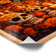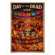 Travel poster featuring Day of the Dead (Día de los Muertos) celebration in the United States, vibrant retro cultural style. Central scene with colorful sugar skulls, marigold (cempasúchil) flowers, candles, papel picado banners, and people in traditional face paint celebrating at night. Warm glowing atmosphere with candlelight and festive energy. Rich color palette: deep purple, marigold orange, turquoise, hot pink, black accents. Subtle grain texture, bold graphic shapes. Add striking vintage typography: “DAY OF THE DEAD – USA”. Vertical 2:3 layout, high-resolution for print.