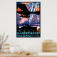 C. 1920 poster vintage de promoção de uma exposição sobre a aviação realizada em Budapeste, na Hungria. Imagem excepcional com navios de guerra, um Zeppelin, barcos voadores e aviões menores.