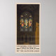Vintage poster de 1923 mostrando o interior de uma igreja com janela de vidro manchado. As belas igrejas de Chicago pelas linhas elevadas.