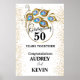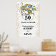 Branca elegante e ouro 50º convite para o aniversário de casamento com anel de ouro e penas de pavão, mude todo o texto você mesmo para qualquer aniversário ou ocasião. Este sinal será facilmente convertido para os tamanhos de 20 x 30 ou 24 x 36 polegadas.