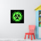 Risco biológico - inscrição verde com símbolo de risco biológico verde e preto.