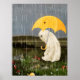 Walter gosta da chuva primavera e procura caracóis na grama.
