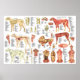 Gráfico anatômico de cães 24" X 36". A poster tem 29 ilustrações mostrando o sistema muscular, o sistema circulatório, o sistema esquelético, o sistema nervoso e os órgãos internos do cão. O poster é rotulado com descrições.