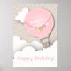 Poster de Aniversário do Balão de Ar Quente Rosa