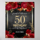 Elegante Faux gold confetti destaca na borda superior e inferior. Rosas vermelhas profundas brilhantes com sotaques florais dourados. Todo o texto é ajustável e fácil de mudar para as necessidades do seu próprio partido. design de modelo de 50 anos elegante excelente.