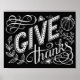Dê aos obrigados uma citação de inscrição manual no estilo de conselho de giz em fundo preto. Poster de Natal de Ação de Graças