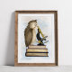 Poster de Arte da Biblioteca de Coruja e Microscóp