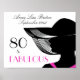 Oitenta é um ano marcante! Celebre seu 80 de aniversário em estilo com este Fabuloso design de Aniversário da Arte Deco Elegante. O motivo preto e branco é realçado com um traço de rosa quente. Uma imagem de uma mulher bonito na silhueta com um chapéu grande, elegante e largo, é perfeito para cada mulher digna e moda. A tipografia moderna misturada a uma fonte chic parisiense adiciona o toque final à beleza eterno desta design.