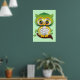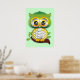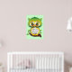 Coruja verde e bonita com olhos grandes, parece um artesanato de papel.