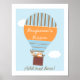 O poster de berçário de balões de ar quente deste rapaz personalizado apresenta um balão de ar quente de ponto listrado, alguns animais de floresta e duas nuvens sobre um fundo azul claro. Eu fui inspirado por arte stencil, impressões de serigrafia e ilustrações de livros infantis para este design. Está pronto para ser personalizado e é adequado para um quarto de berçário ou de menino.