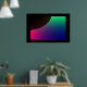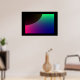 Esse poster apresenta uma imagem digitalmente criada que se assemelha à crescente de um planeta escuro cercado por uma aurora cósmica de verde, azul, roxo e rosa.