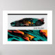 Poster mostrada com uma impressão fotográfica de um carro desportivo elegante. Mostrado no poster de valor, mas você pode atualizar e personalizar. Personalizar ou comprar conforme mostrado. Imagem do stock freepik.com