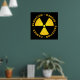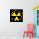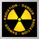 Perigo - Radiação - letras em negrito e símbolo de radiação em amarelo-alaranjado com fundo preto.