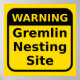 Aviso - Site de aninhamento Gremlin - poster de sinal de aviso preto e amarelo faz uma adição humorística à sala do servidor.
