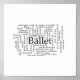 Nuvem de palavras de palavras e posições relacionadas a balés. Poster de dança de arte de palavra para bailarina.