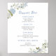 Símbolo azul de "Bar de deserto" floral com um design floral de cor aquosa impressionante, com flores brancas e poeirentas, como a hydrangea. A letra manuscrita divertida adiciona um encantador toque de vintagem ao design e complementa perfeitamente os florais.
