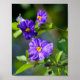 Um poster com flores roxas de uma Batata Azul.