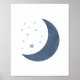 Pôster de Berçário Menino Lua e Estrelas Azul Mari