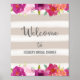 Poster impressão para sinal de boas-vindas com flores cor-de-rosa, flores fuchsia design e faixas esticadas fundo aquoso.