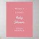 Fácil de personalizar com o nome da futura mãe e a data do chá de fraldas e a localização do evento, este simples poster de sinal de boas-vindas minimalista apresenta um texto branco na moda num fundo cor-de-rosa pincelado.