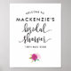 Um poster de boas-vindas preto e rosa-chic, preto e rosa, com uma elegante letra escrita com letra de estilo escrita e uma imagem de cor-de-água de rosas cor-de-rosa com folhas verdes. Personalize este poster com o nome da futura noiva e a data do evento.