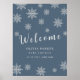Sinal de boas-vindas do Chá de fraldas de floco de neve de inverno do Boho Blue Silver, Elegante minimalista. Projetado com floco de neve de cor d'água de cinza prateada. Coisas na nossa loja de Design de Aglow Urbano. Chá de fraldas de menina, chá de fraldas de bebê, bebê esperado em dezembro, janeiro. Chá de fraldas de inverno.