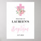 Sinal de boas-vindas do Batismo Menina Rosa Poster 18x24 Aqui está o link para a coleção de Batismo rosa: https://www.zazzle.com/collections/pink_girl_baptism_collection-119527490204150078 Caso você precise de alguma personalização, por favor envie um e-mail: szdesigns2021@gmail.com