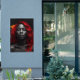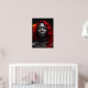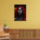 Cabeça vermelha de abertura de cor AI sobre fundo preto. Imagem impressionante. Disponível como produto físico ou download digital.
