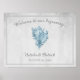 Poster de boas-vindas elegante e simples do Casamento, com uma concha vintage contra um fundo de cinza. Esta design é uma escolha única para um casamento moderno. Fácil de personalizar com seus detalhes de casamento. Clique em "Personalizar" para encontrar mais opções de personalização.