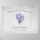 Poster de boas-vindas elegante e simples do Casamento, com uma concha vintage contra um fundo de cinza. Esta design é uma escolha única para um casamento moderno. Fácil de personalizar com seus detalhes de casamento. Clique em "Personalizar" para encontrar mais opções de personalização.
