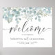 Linda placa de casamento rustica de eucalipto para seu dia especial. O Eucalyptus greenery tinha sido criado utilizando aquarelas e tem um efeito de poeira de ouro fino para esse toque adicional de luxo. A caligrafia de boas-vindas está em uma fonte legal escrita à mão na cinza. Fácil de editar com suas informações exclusivas.